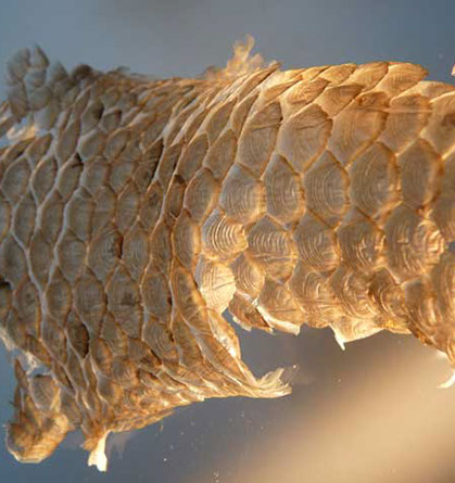 Skink skin is a delecate translucent overlaping interlocking sheet. This is a piece from the top of the tail.