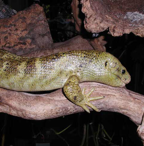 Corucia zebrata, Solomon Islands Skink, prehensile-tailed skink, monkey-tailed skink, giant skink, zebra skink, monkey skink.