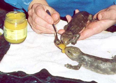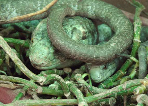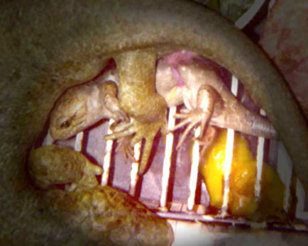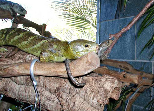 Pregnant females seem to seek out cooler areas of the enclosure. One in particlular has babies usually in Feburary and March in San Diego, the coldest part of the year.Pregnant females sometimes will soak in their water dishes 2-3 days before delivery and the babies are usually born at night.