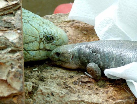 The family seems to be a important part of skink relationships. This is a rare quality of reptile life. It also makes keeping groups of skinks for breeding challenging. Introducing new individuals to the group is hard or impossible. Two of my female use to get along in a group of three adult females, their offspring, and one male. I have two enclosures with a father and sonWhen moving to a new house, groups females with their young, were separated in different smaller side-by-side enclosers, for a year. In wanting to introduce them back into a large encloser together the females violently attacked each other.